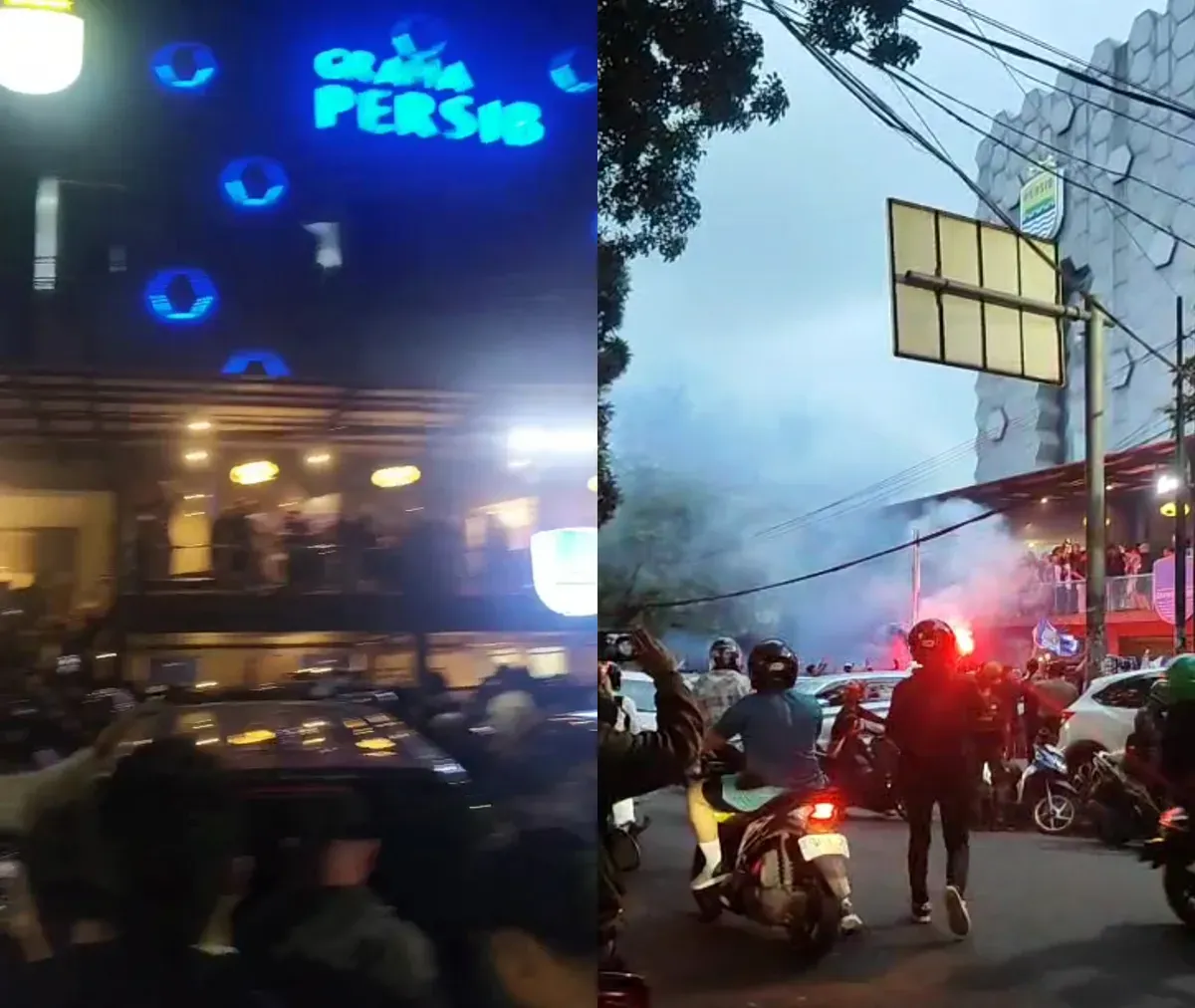 Pada salah satu video, terlihat sejumlah bobotoh yang berjumlah sekira puluhan berkumpul di depan Graha Persib sambil menyalakan flare dan mengibarkan bendera berwarna biru-putih.