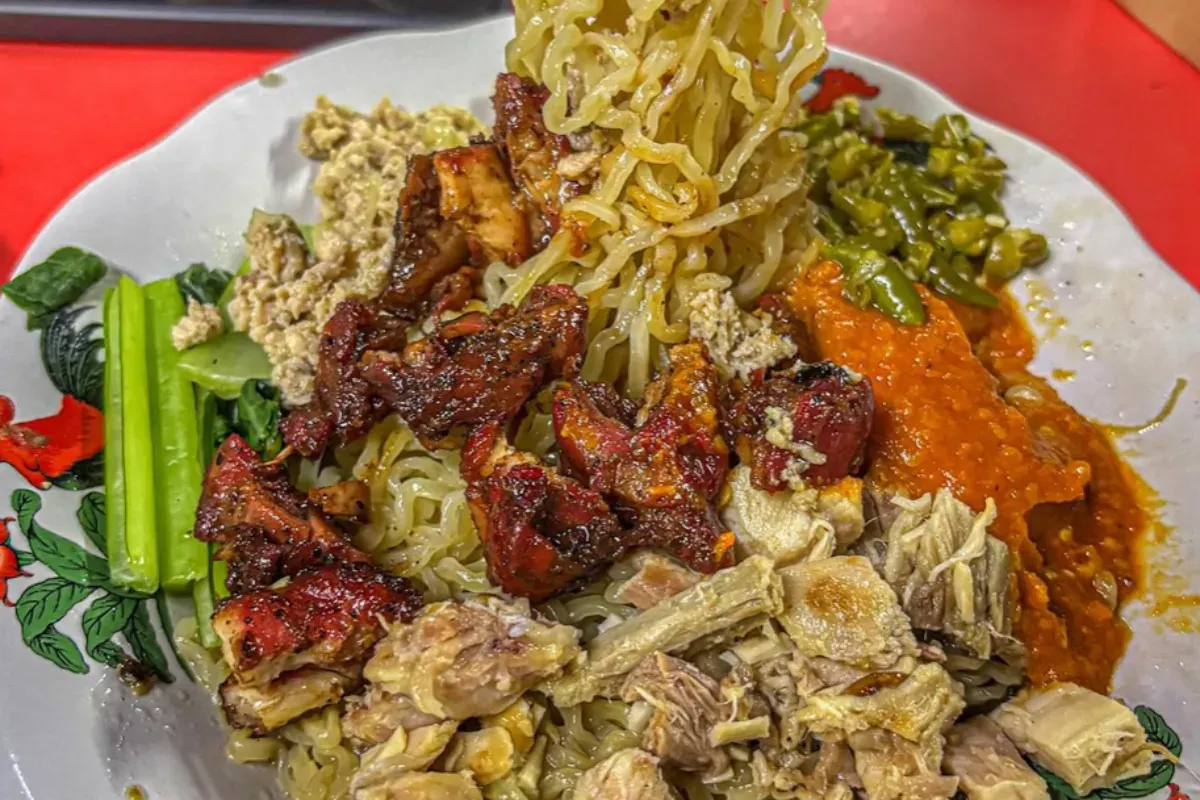 Mie ayam di sini terkenal dengan bumbu gurih asin yang khas, berbeda dari mie ayam kecap manis pada umumnya. Toppingnya melimpah seperti ayam berbumbu, jamur, bakso, pangsit basah, hingga kerupuk pangsit renyah.