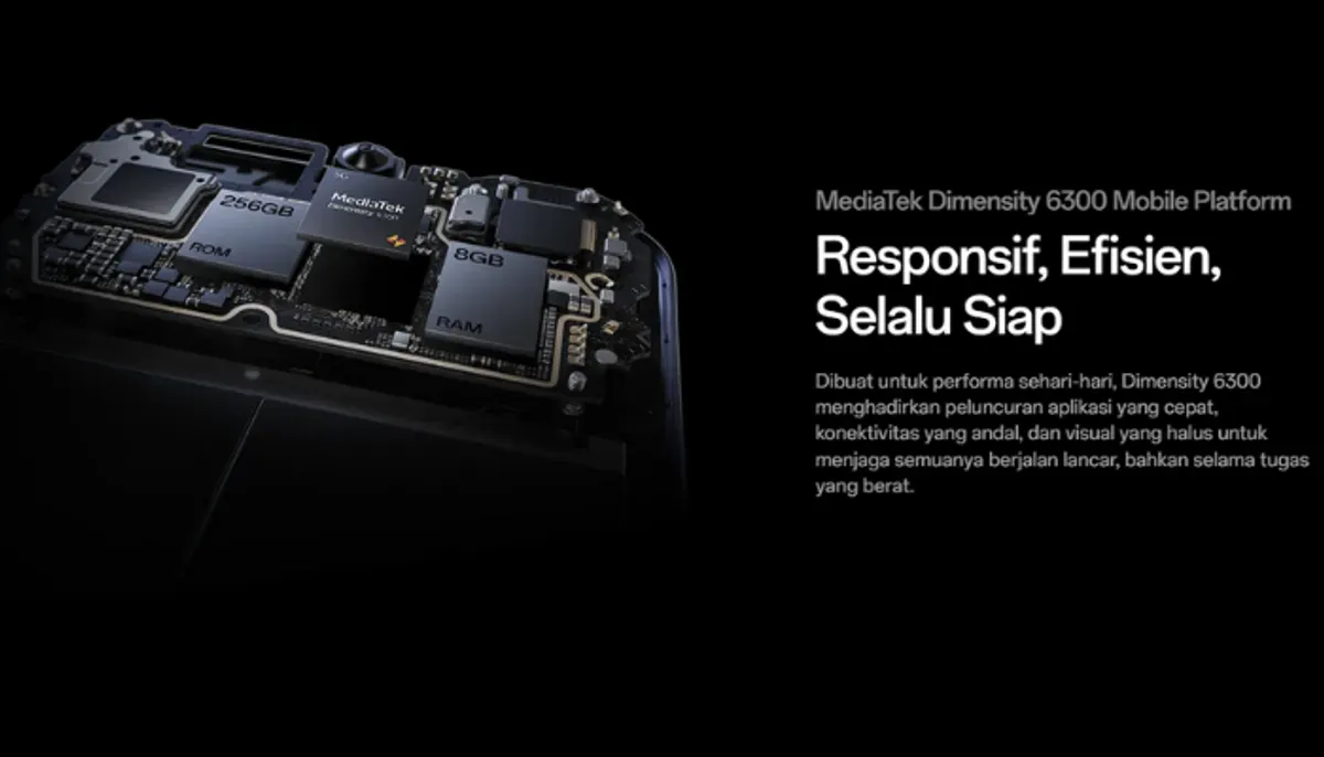 Di balik bodinya, Spesifikasi Oppo A6 Pro 5G ditenagai oleh chipset MediaTek Dimensity 6300 yang dibangun dengan arsitektur octa-core yang efisien.