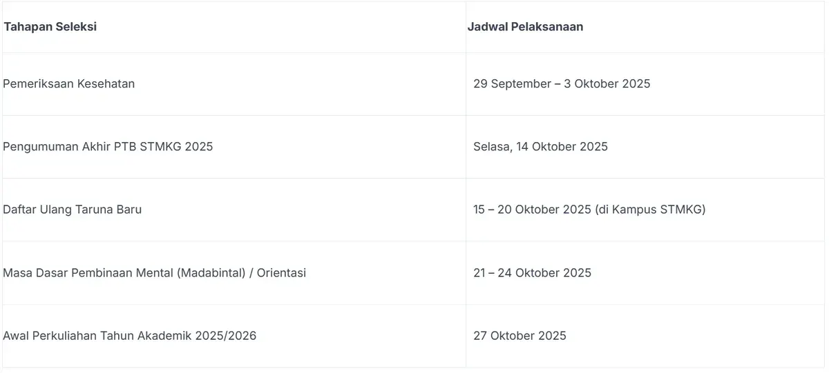Jadwal Lengkap Tahapan Akhir PTB STMKG 2025