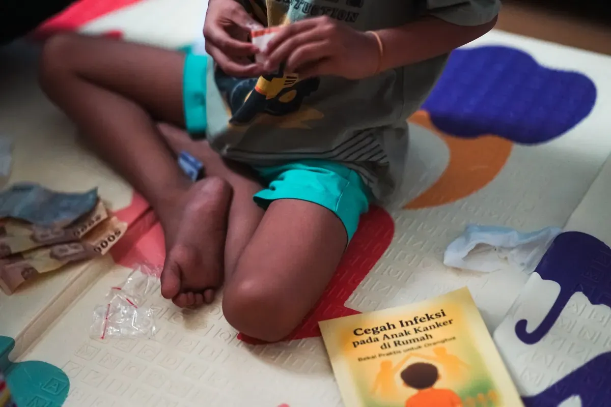 Seorang anak di Rumah Singgah Graha Yayasan Onkologi Anak Indonesia (YOAI), Rabu, 13 Oktober 2025. (Sumber: Dhiya Ahmad)