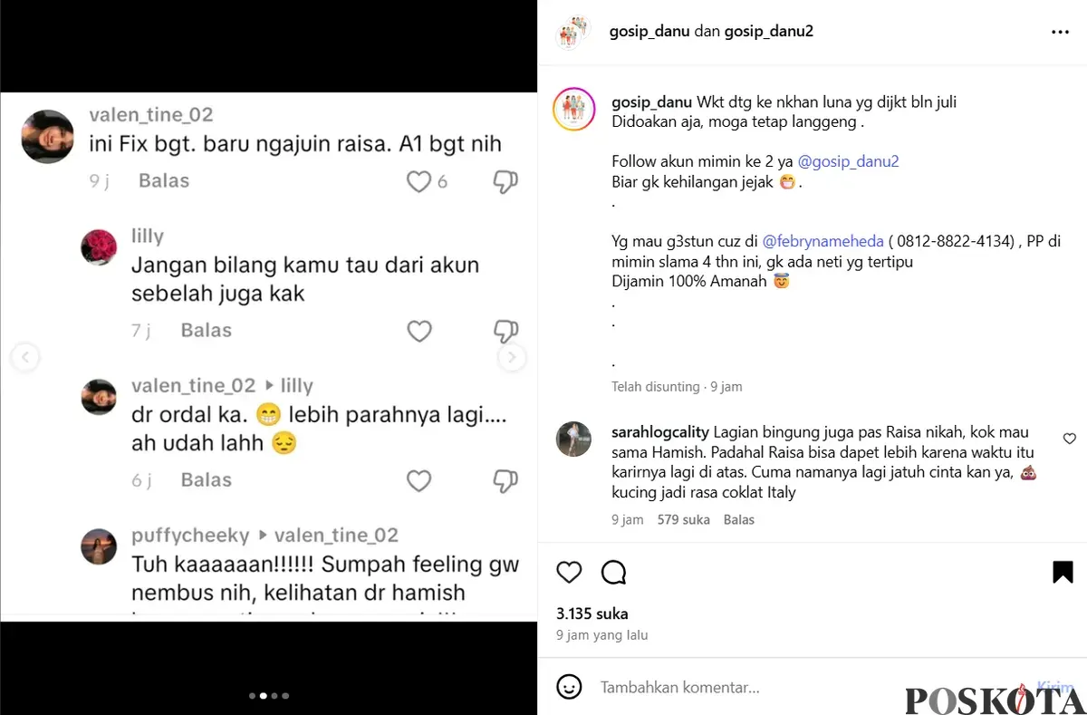 “ini fix bgt. Baru ngajuin raisa. A1 bgt nih,” kata netizen @valen_tine_02 seperti dilansir Poskota dari Instagram @gosip_danu.