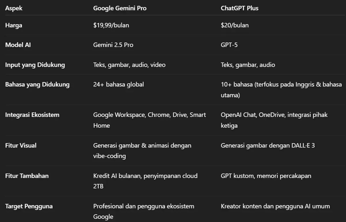 Baik Google Gemini Pro maupun ChatGPT Plus sama-sama menawarkan pengalaman AI premium yang mendalam dan adaptif.