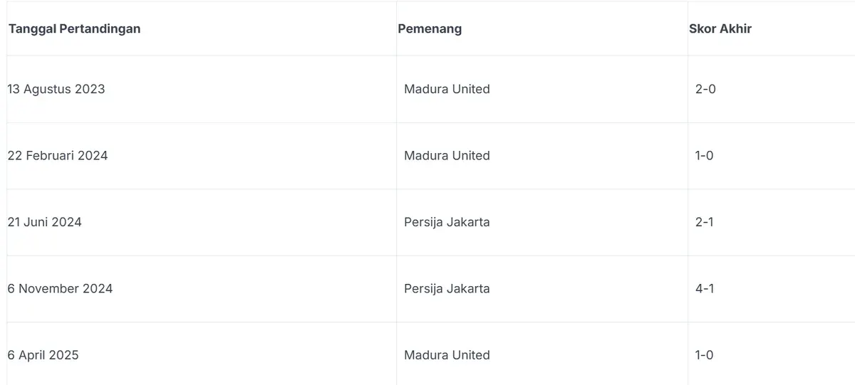 Persaingan antara Madura United dan Persija Jakarta memang tidak pernah kehilangan daya tarik. Dalam lima pertandingan terakhir, hasilnya cukup berimbang dan menunjukkan betapa ketat persaingan kedua tim.