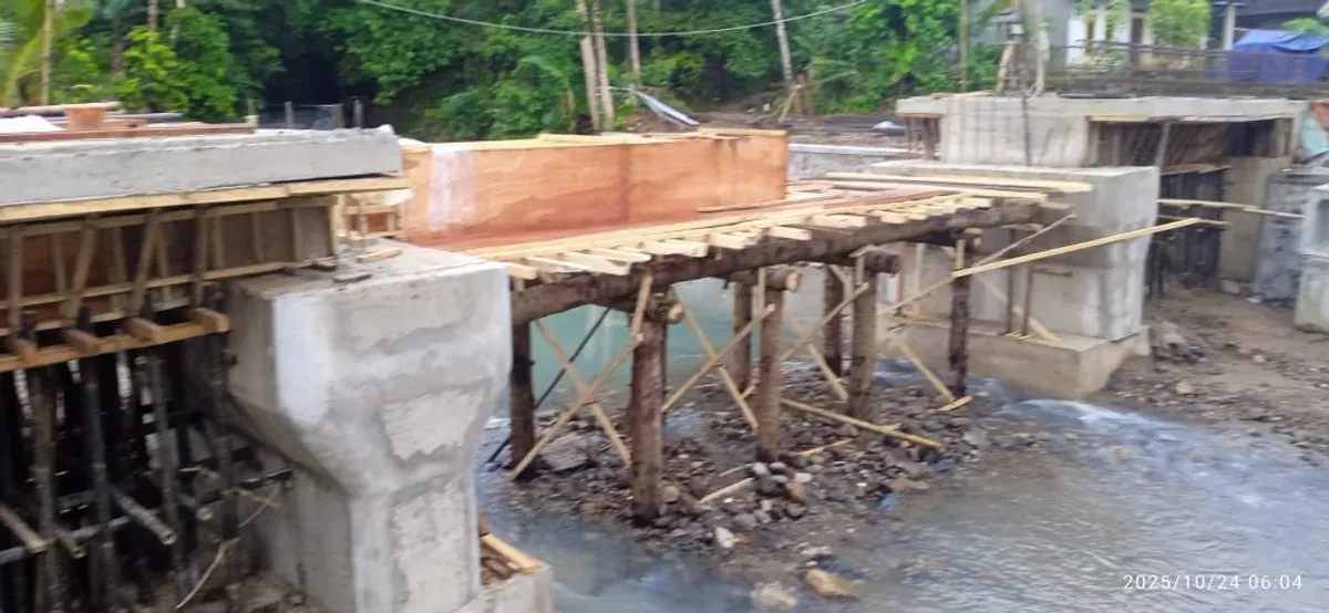 Jadi lanjutnya, pihaknya meluruskan informasi yang beredar tentang siswa yang menyebrang sungai di Kampung Cegog tersebut. Sebetulnya bukan tidak ada pembangunan, melainkan proses pembangunan jembatan saat ini sedang berjalan.