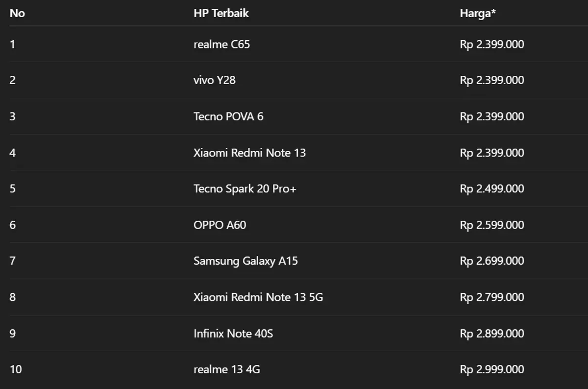 Berikut 10 rekomendasi HP terbaik di harga Rp 2–3 jutaan yang bisa kamu pilih sesuai kebutuhan: