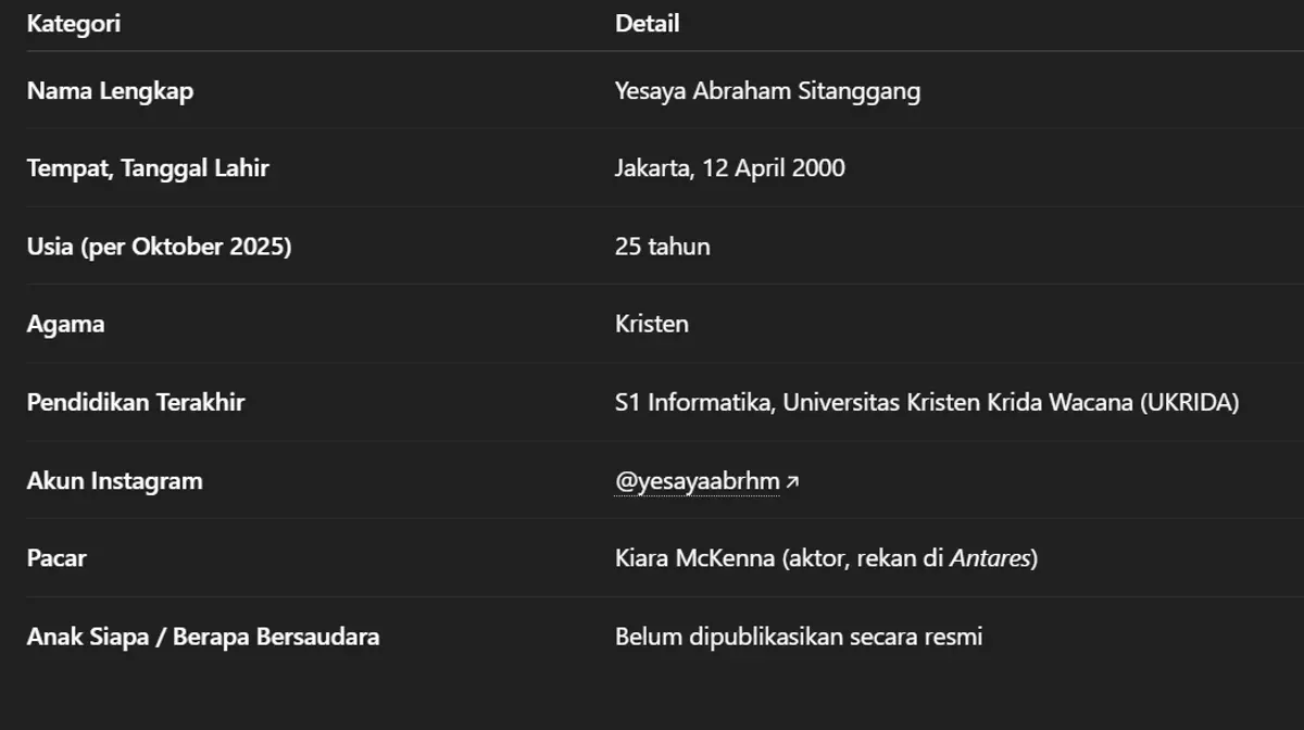 Biodata Lengkap Yesaya Abraham (Terverifikasi)