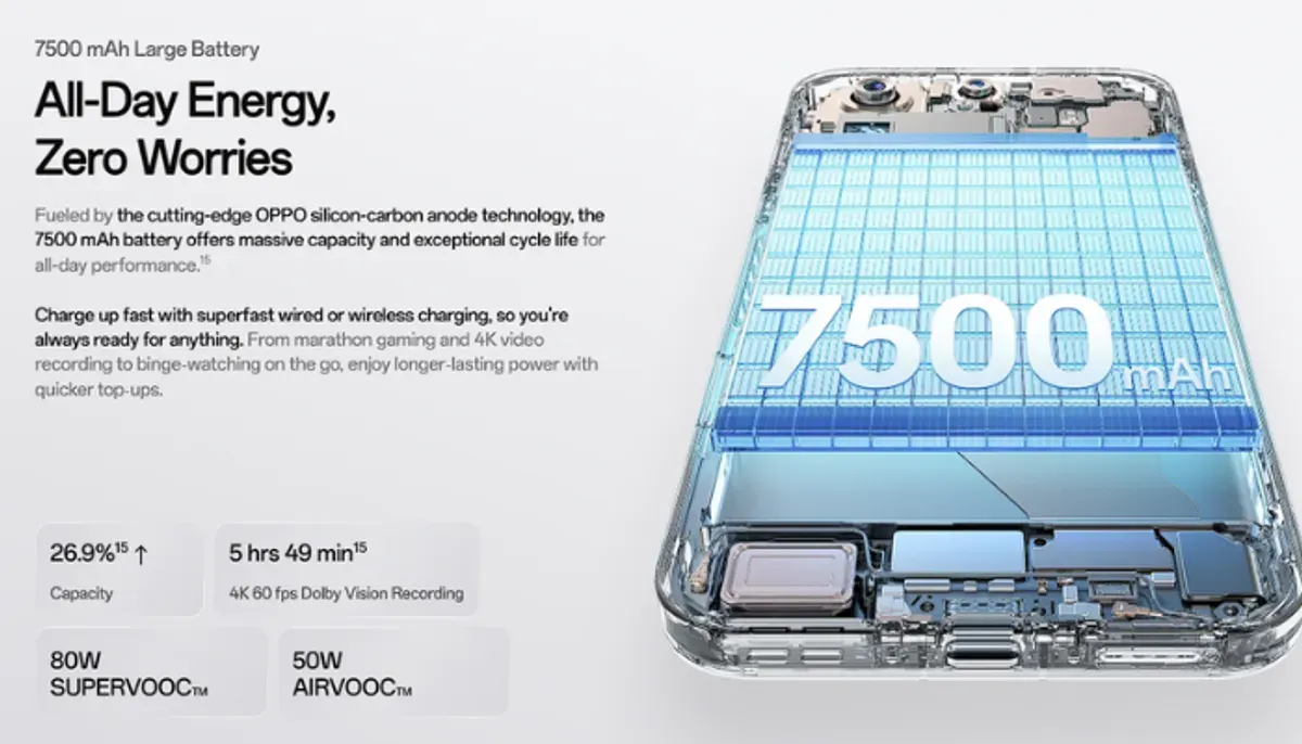 Yang tak kalah mengesankan adalah baterai Silicon-Carbon berkapasitas 7500mAh, yang terbesar dalam sejarah seri Find. Teknologi baterai ini memungkinkan penggunaan seharian penuh, bahkan bagi power user.