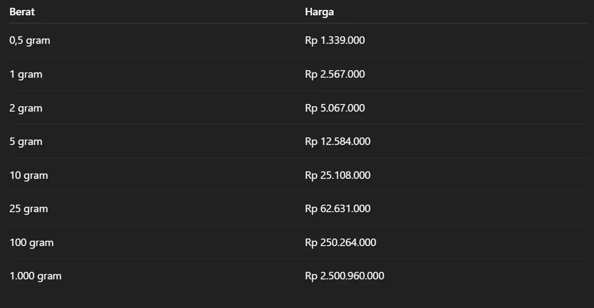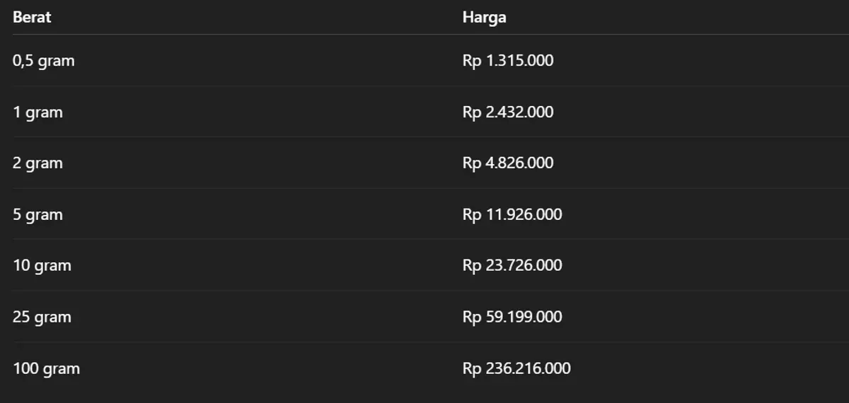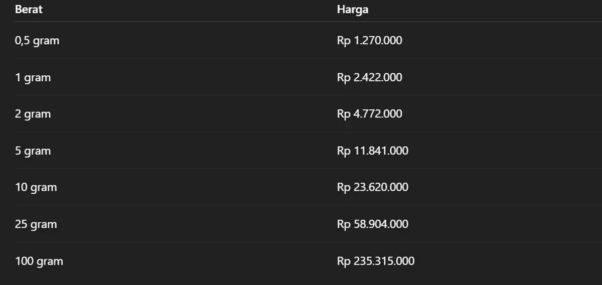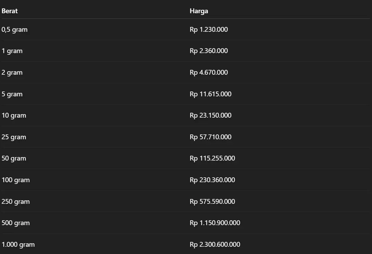 Berikut daftar harga lengkap emas Antam per 11 November 2025: