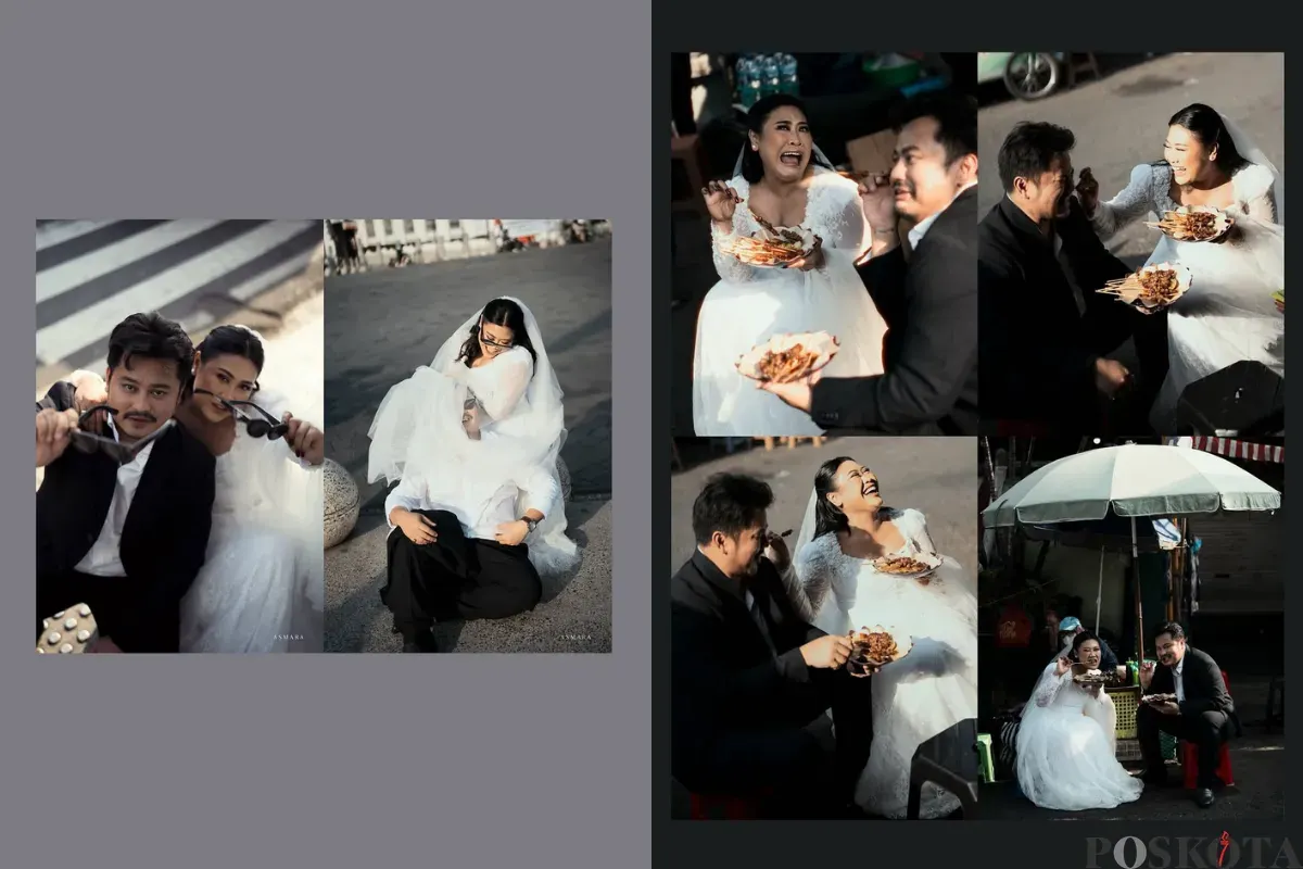 Foto pre-wedding Boiyen dan Rully tampak seru dengan konsep street view Yogyakarta.