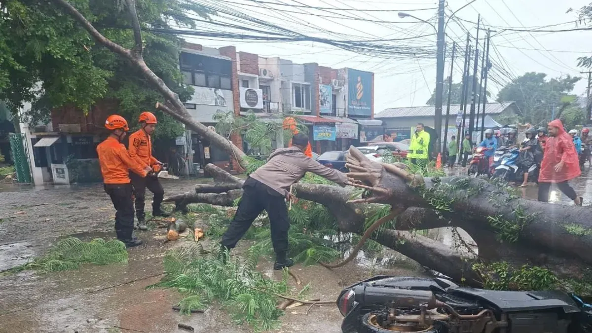 "Karena hujan, intensitas tinggi disertai angin kencang sehingga mengakibatkan pohon tumbang yang menimpa satu unit motor yang sedang parkir dan menutupi Jalan Raya Karadenan," kata Staff Kedaruratan BPBD Kabupaten Bogor, Jalaludin, Selasa, 18 November 2025.