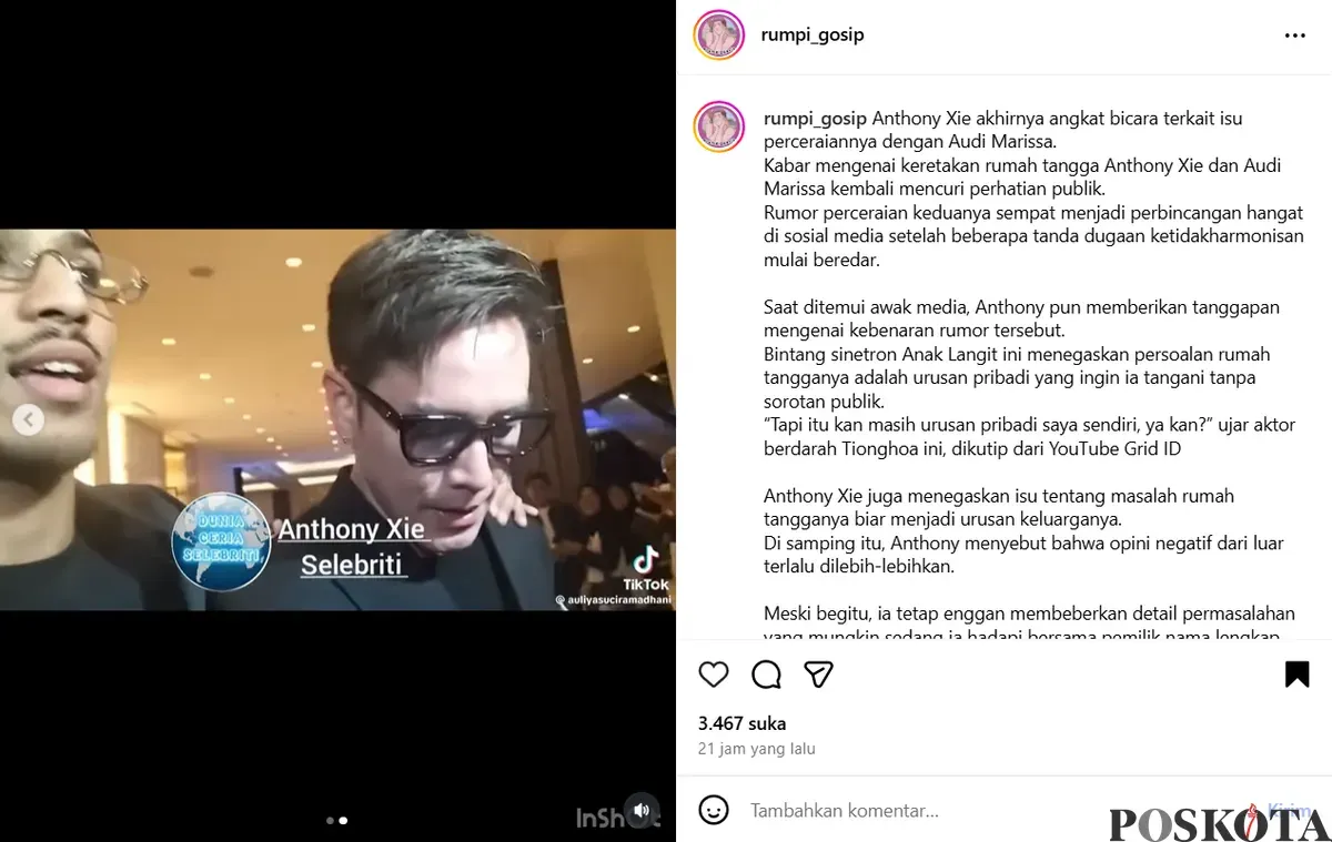 Hingga saat ini, belum diketahui secara pasti apakah Anthony dan Audi memang cerai atau tidak.