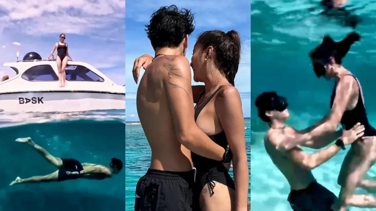 Olla Ramlan membagikan momen kemesraannya bersama Tristan Molina saat liburan di Gili Meno. Mereka berdua berenang di laut.
