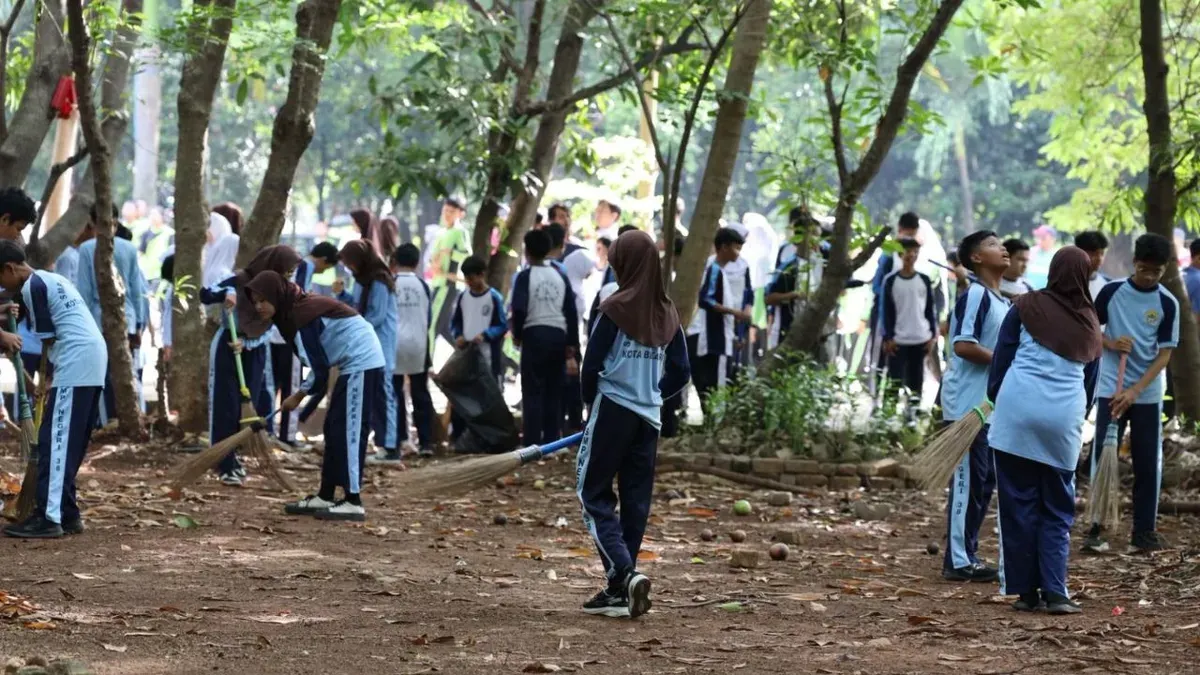 Ratusan siswa SMP di Kota Bekasi membersihkan Hutan Taman Kota, Rabu, 26 November 2025. (Sumber: Dok. Pemkot Bekasi)