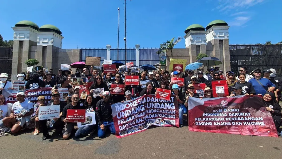 Aksi desakan pelarangan dan perdagangan daging hewan domestik di depan Gedung DPR RI, Gelora, Tanah Abang, Jakarta Pusat. (Sumber: Dok. Istimewa)