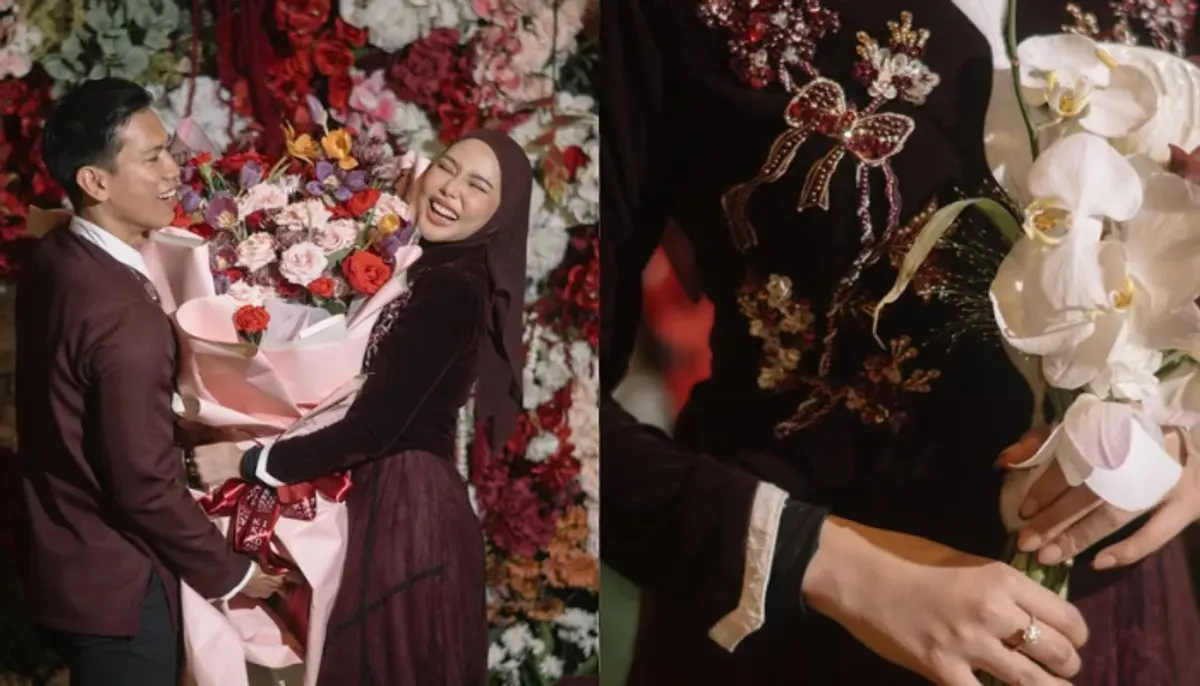 Dalam unggahan terbarunya, suasana haru dan khidmat begitu terasa di acara pertunangan yang digelar secara intimate tersebut. Dara Arafah dilamar dan tampil serasi dan memukau mengenakan busana bernuansa maroon.