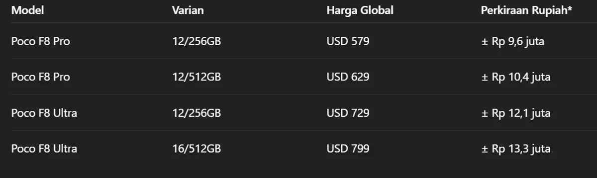 Itulah informasi seputar perbandingan Poco F8 Pro dengan F8 Ultra. Semoga bermanfaat.