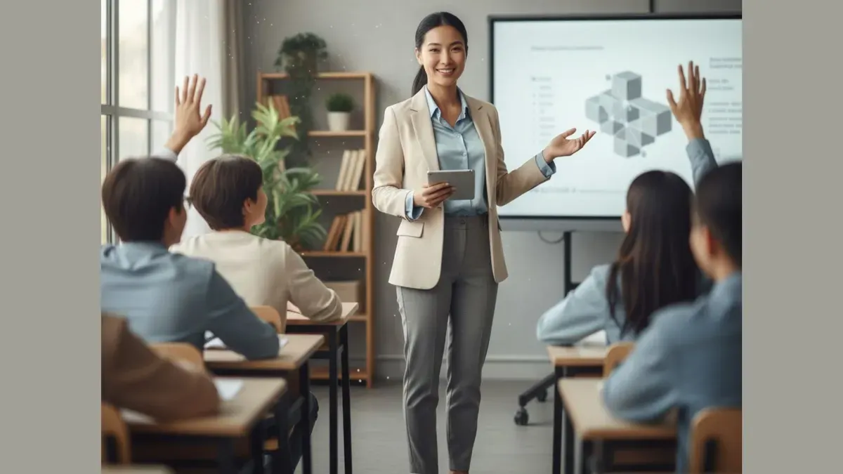 "Gunakan fitur nano banana untuk membuat gambar seolah-olah diambil dengan kamera iPhone 16. Tampilkan figur (perempuan/laki-laki) sedang mengajar di sekolah internasional. Sudut pandang dari bangku siswa, fokuskan kamera pada figur guru dengan efek blur pada latar belakang siswa. Pastikan wajah figur referensi tetap sama."