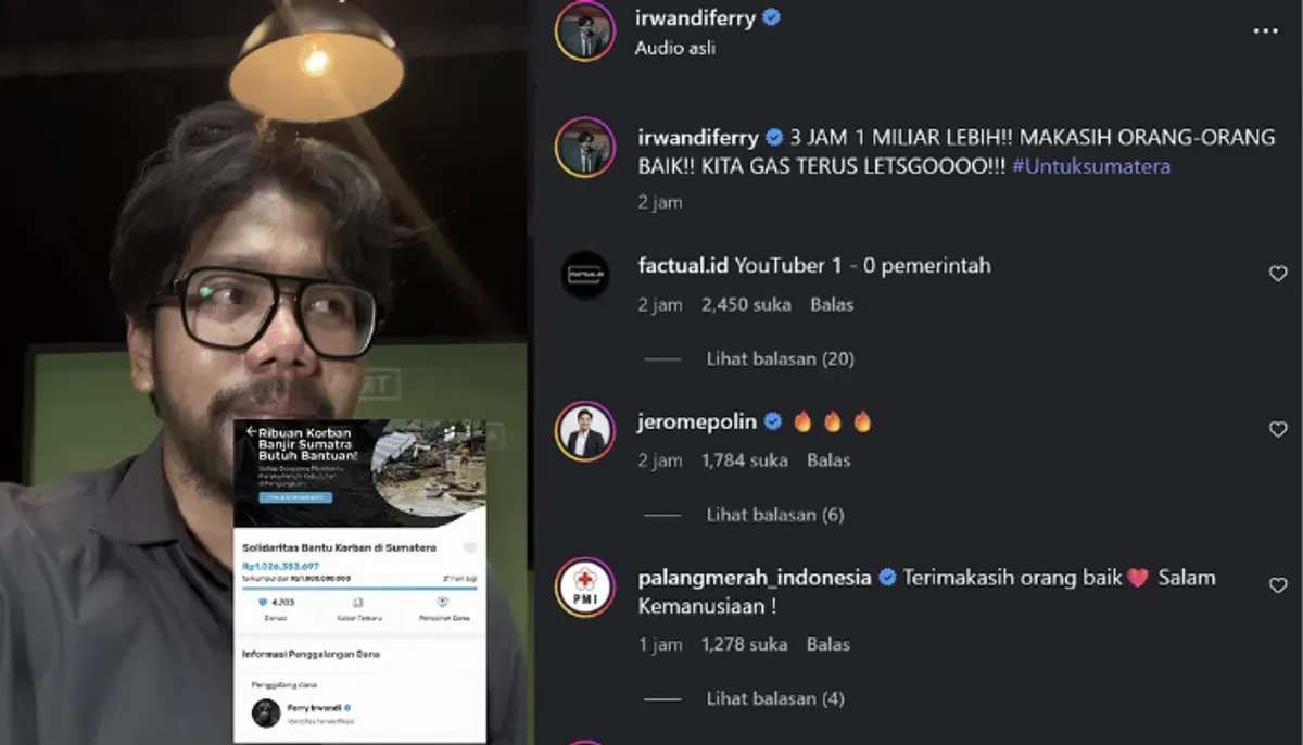 "Halo teman-teman, gue cuma mau ngupdate. Ini udah 3 jam sejak kita publish dan sekarang donasi untuk korban di Pulau Sumatera sudah menyentuh 1 miliar rupiah. Tepuk tangan dong semuanya!" ujarnya.