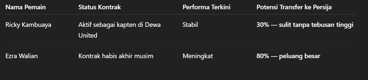 Rumor pergerakan transfer tim ibu kota ini menjadi perbincangan hangat setelah dua nama muncul sebagai kandidat rekrutan anyar: Ricky Kambuaya dan Ezra Walian.