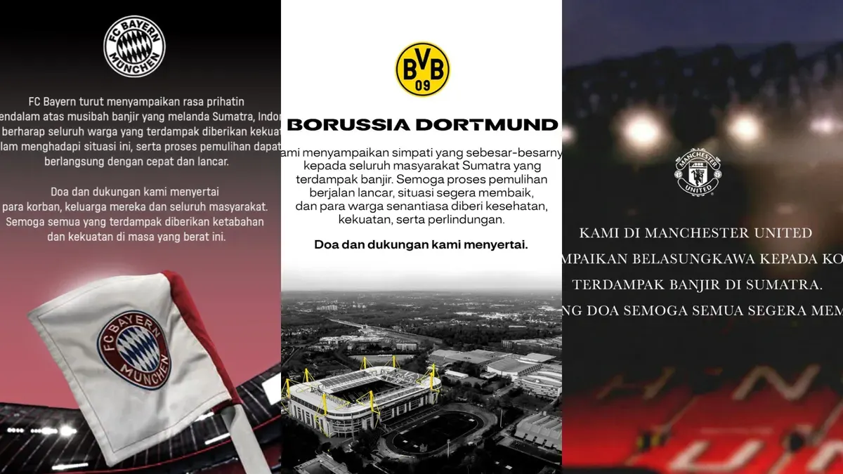 POSKOTA.CO.ID - Klub sepak bola top Eropa seperti Manchester United dan Bayer Munchen mengucapkan belasungkawa atas peristiwa banjir Sumatra.