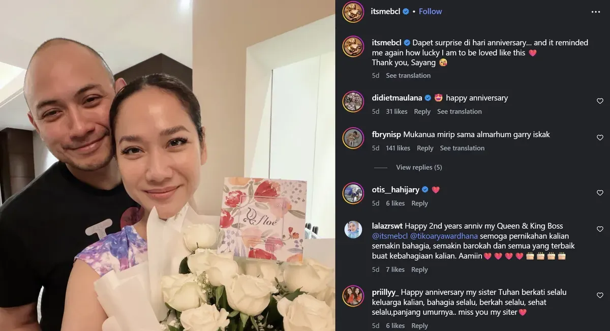 - Unggahan Anniversary Seperti disebut, BCL dan Tiko merayakan ulang tahun pernikahan mereka dengan penuh kebahagiaan.