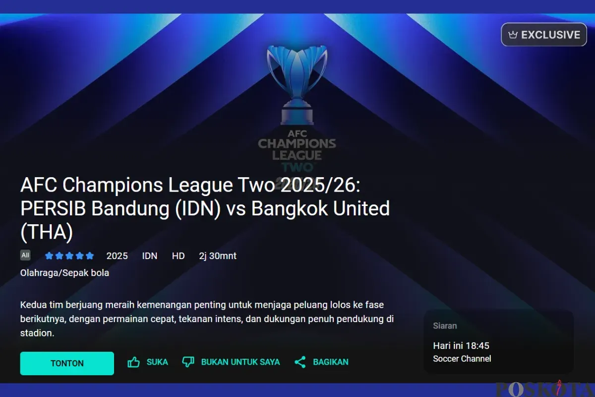 Baca Juga: Jadwal Persib vs Bangkok United di ACL 2 Hari Ini Jam Berapa? Cek Siaran Langsung dan Link Nontonnya