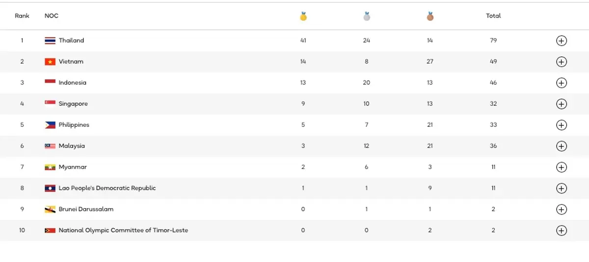Vietnam memiliki 14 emas, 8 perak, dan 27 perunggu. Di posisi teratas saat ini ditempati Thailand yang berhasil mengoleksi 41 emas, 24 perak serta 14 perunggu.