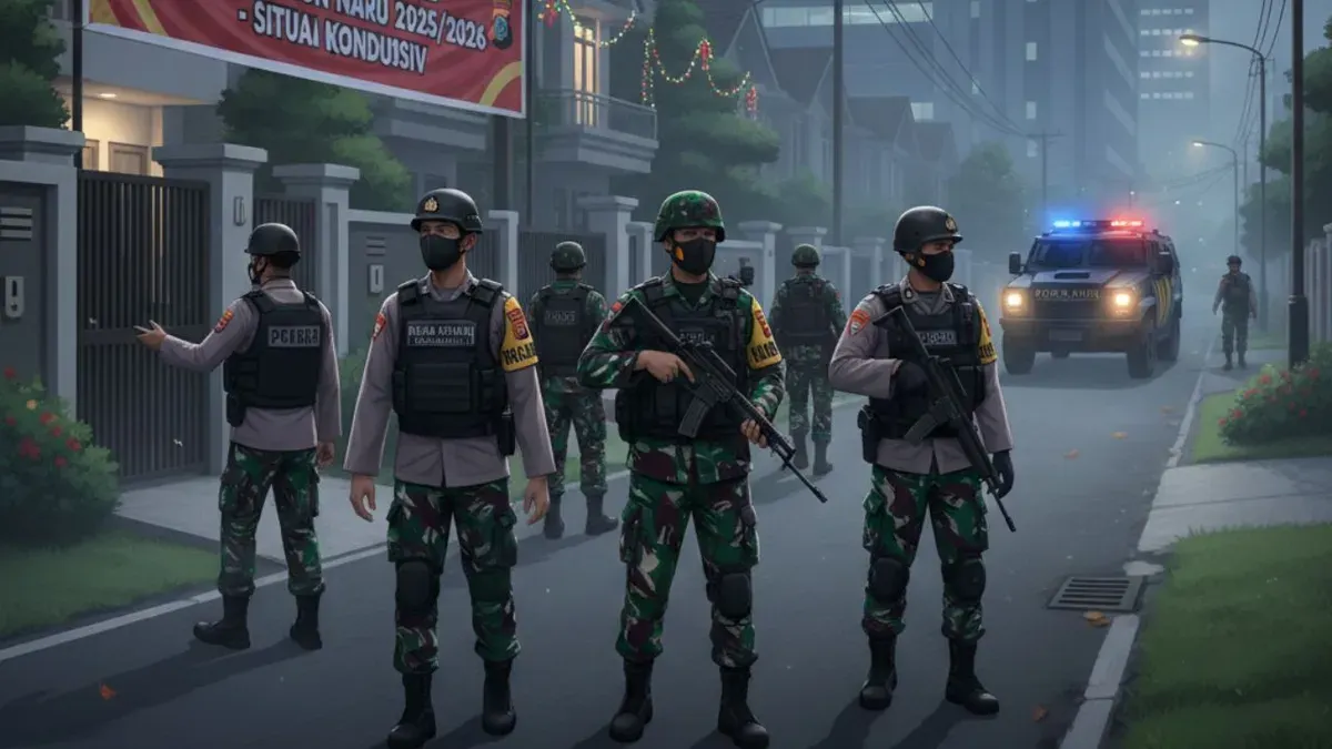 Polda Metro Jaya menggelar patroli terpadu untuk mengamankan rumah warga dan objek vital selama libur Natal 2025 dan Tahun Baru 2026 demi situasi kondusif. (Sumber: Gemini AI)