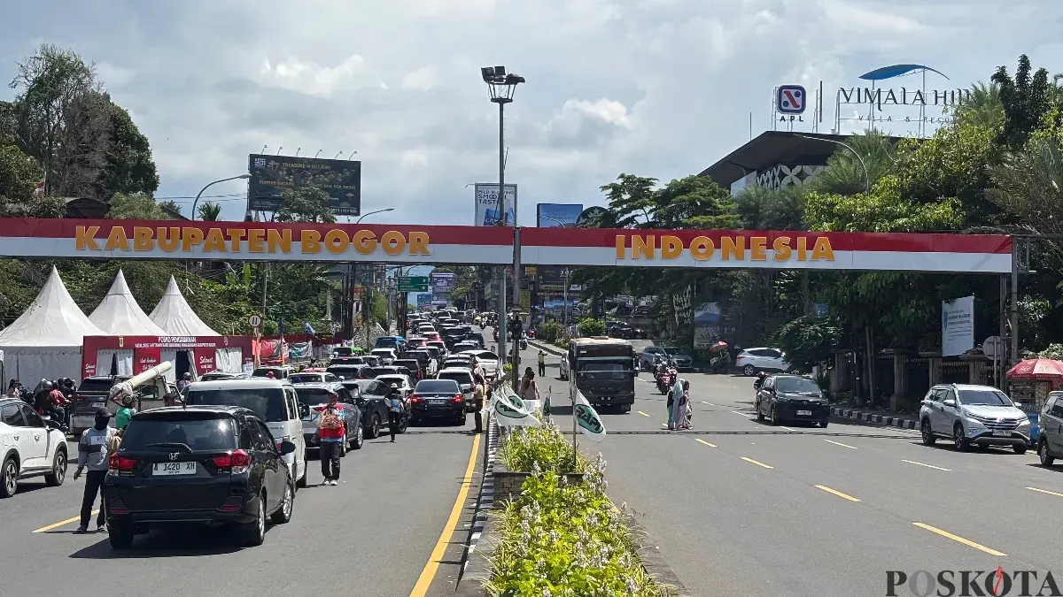Dari pantauan Poskota, Simpang Gadog pukul 11.00 WIB, terjadi sedikit antrean karena banyaknya kendaraan dari Jakarta menuju kawasan wisata Puncak.
