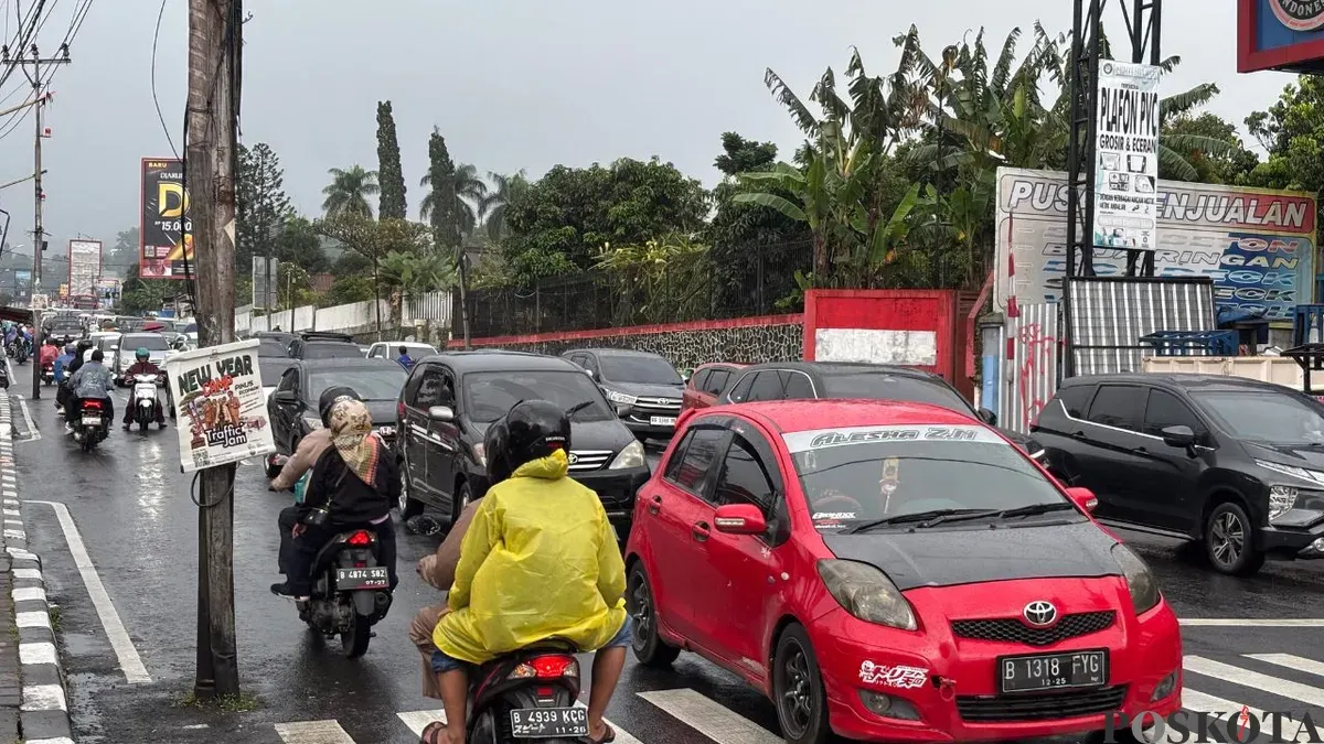 CISARUA, POSKOTA.CO.ID - Volume kendaraan di wilayah Puncak Bogor mengalami kepadatan dari Pasar Cisarua hingga Simpang Megamendung.