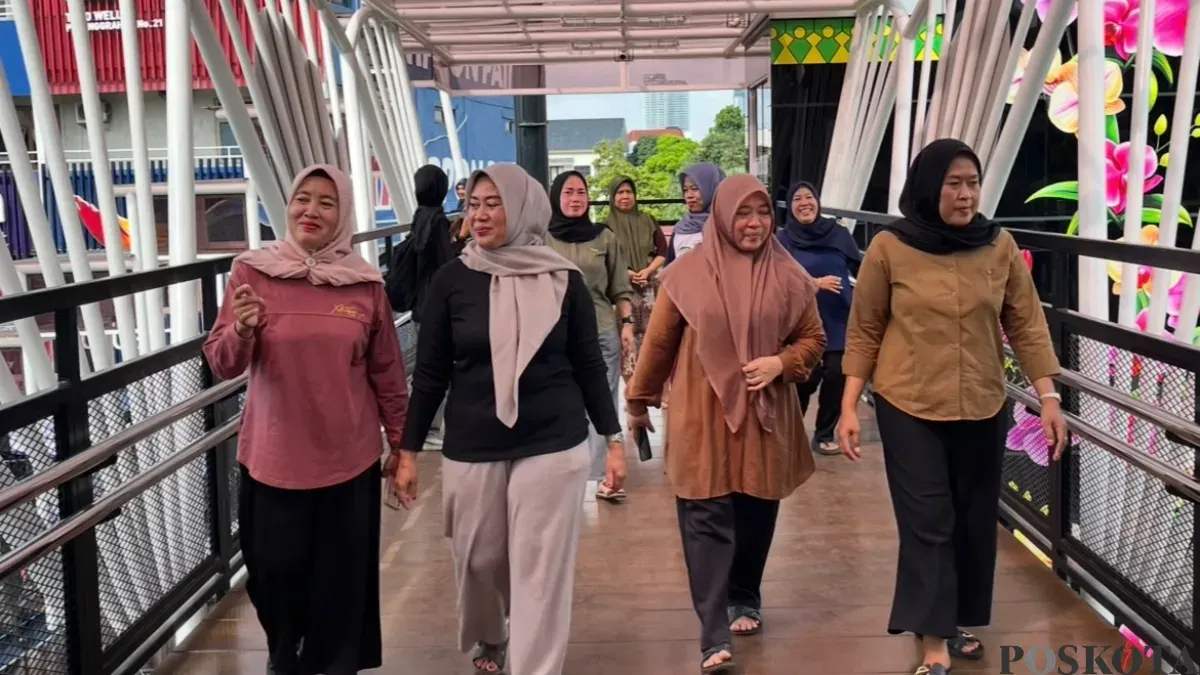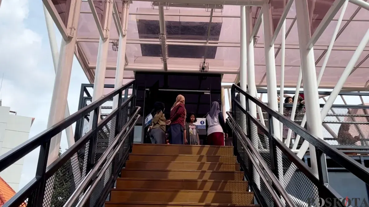 Ia terlihat mengajak anak-anak dan keluarganya untuk merasakan langsung JPO Pesanggarahan yang baru saja diresmikan Gubernur DKI Jakarta Pramono Anung.