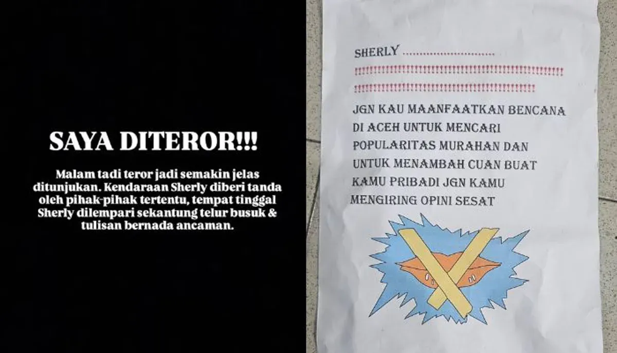 Sherly Annavita, influencer dan dosen asal Lhokseumawe, Aceh, melaporkan eskalasi ancaman yang dialaminya. Setelah vokal menyoroti penanganan bencana Sumatera, terutama di tanah kelahirannya, ia kini menghadapi teror fisik langsung di rumahnya di Jakarta.