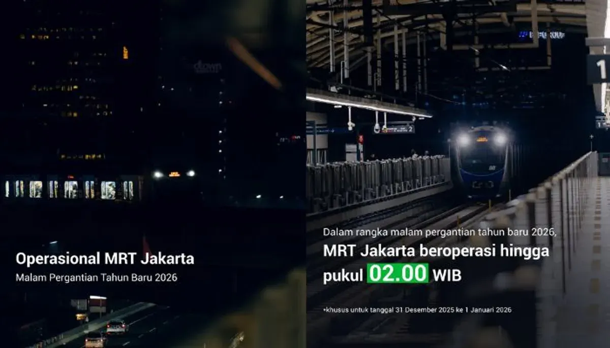 • Malam Tahun Baru (31 Desember 2025): MRT Jakarta akan beroperasi hingga pukul 02.00 WIB dini hari.