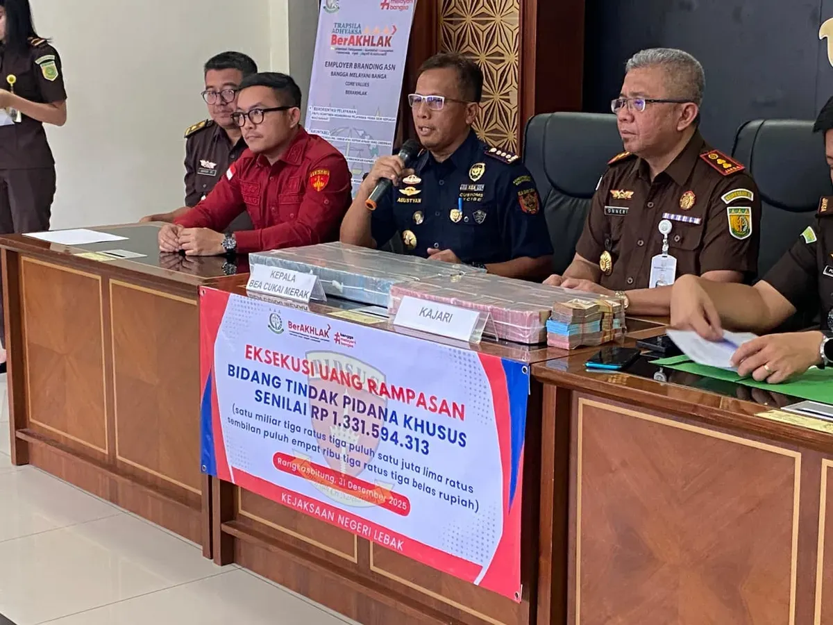 “Uang rampasan yang kami eksekusi hari ini sebesar Rp1.331.594.313. Ini adalah bentuk nyata komitmen Kejaksaan Negeri Lebak bersama Bea Cukai Merak dalam memulihkan keuangan negara,” katanya.