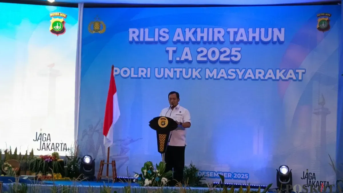 Direktur Reserse Kriminal Umum Polda Metro Jaya Kombes Iman Imanuddin dalam pemaparan Rilis Akhir Tahun (RAT) 2025 di BPMJ, Jakarta Selatan, Rabu, 31 Desember 2025. (Sumber: Poskota/Ali Mansur)