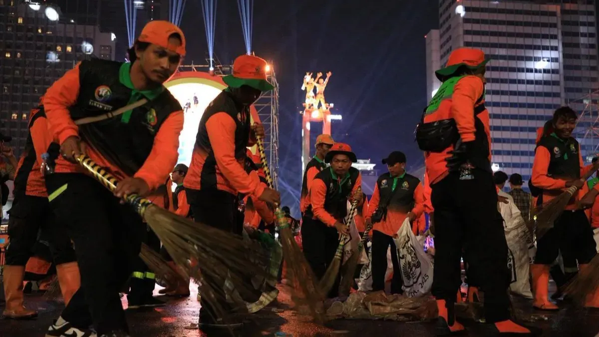 Pembersihan dilakukan ribuan petugas kebersihan dengan dukungan armada pengangkut sampah. Asep menilai kebijakan tanpa kembang api, kondisi cuaca, serta konsep perayaan yang lebih sederhana berkontribusi pada penurunan volume sampah tahun ini.