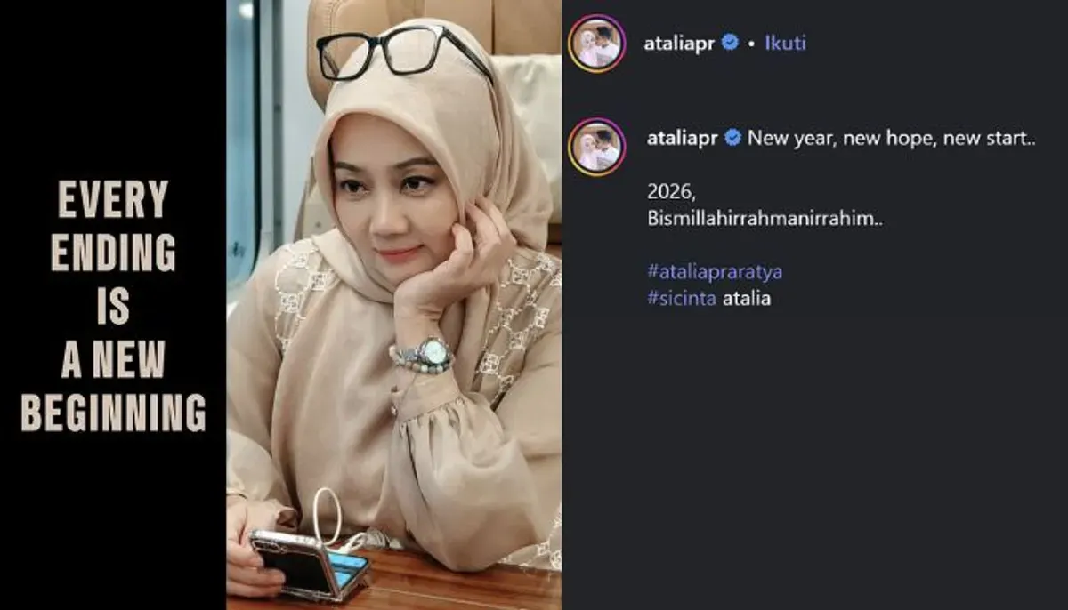 Dalam unggahannya di Instagram pada Kamis 1 Januari 2026, Atalia Praratya menyampaikan pesan filosofis tentang transisi dan harapan baru.