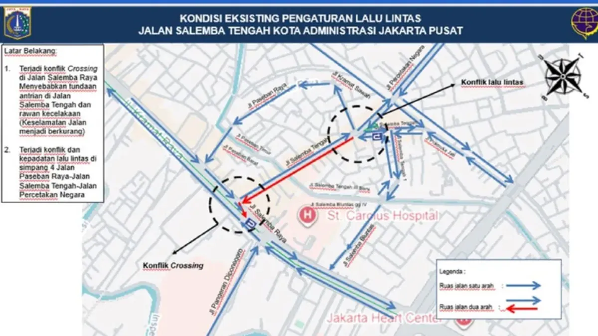 Adapun Jalan Salemba tengah awalnya merupakan lalu lintas dua arah, dan uji coba satu arah itu akan berlangsung pada Selasa, 6 Januari 2026 hingga Selasa, 20 Januari 2026 mendatang.