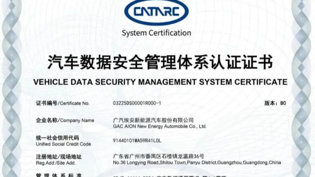 GAC tercatat sebagai produsen otomotif pertama di Tiongkok yang berhasil memenuhi seluruh persyaratan sertifikasi sistem manajemen keamanan data kendaraan.