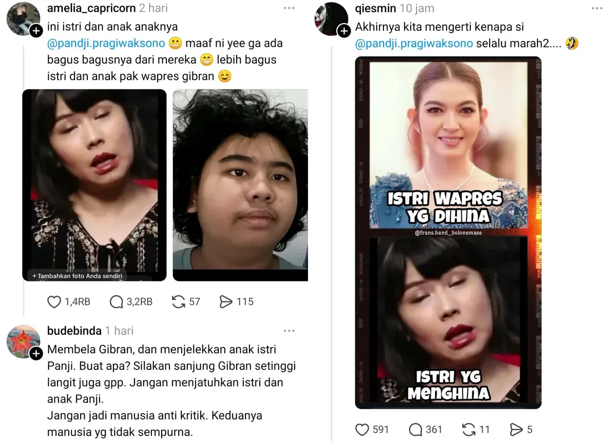 Tak hanya Pandji yang menerima kecamatan dari sebagian warganet, namun sang istri, Gamila Arief dan kedua anaknya pun turut mendapatkan ujaran kebencian dari netizen.