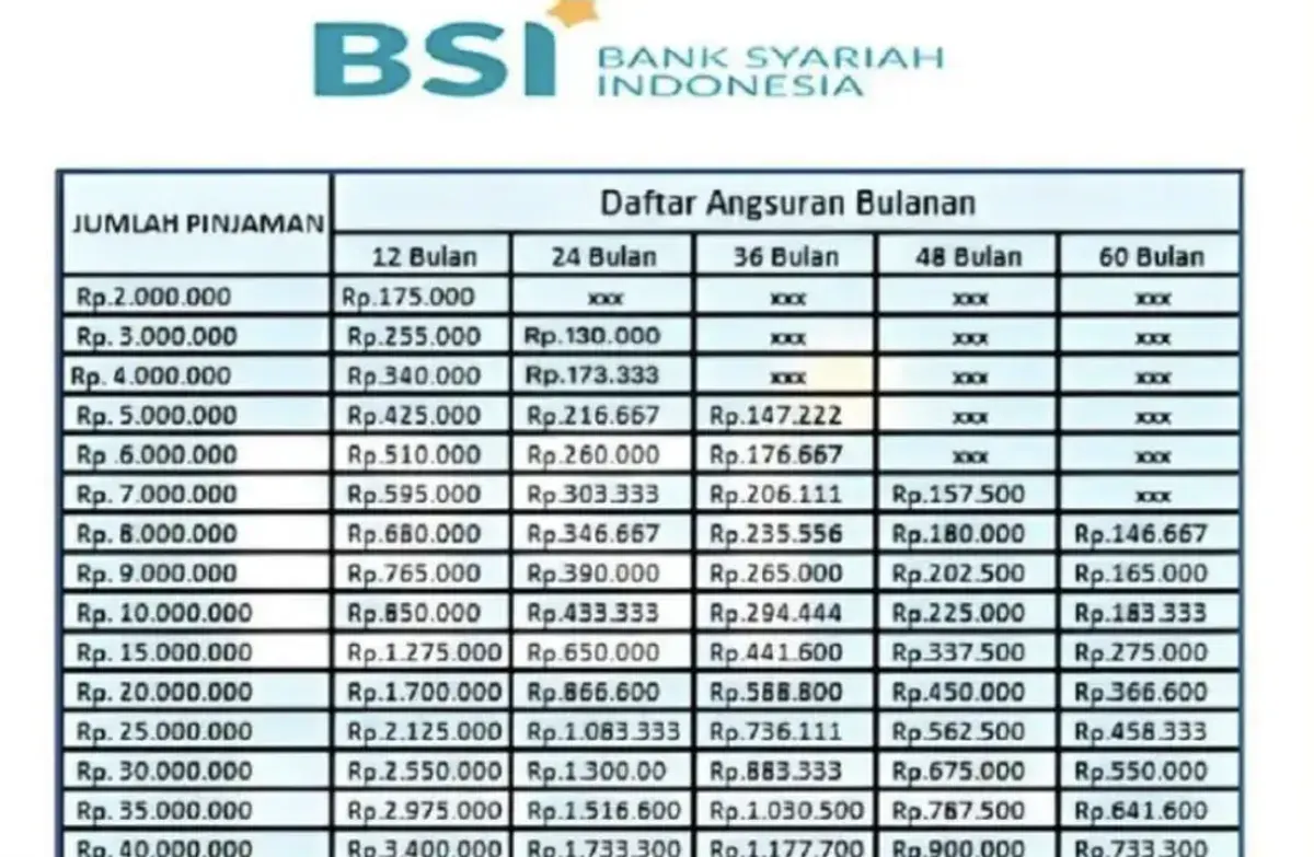 Bank Syariah Indonesia (BSI) menghadirkan skema pembiayaan berbasis syariah dengan proses pengajuan yang lebih praktis, tanpa agunan, serta cicilan yang relatif ringan.