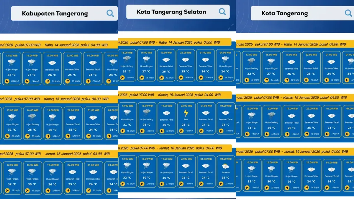 Tambahan informasi, hujan akan mengguyur Kabupaten Tangerang mulai pukul 07.00 hingga 04.00 WIB dalam periode 13 Januari hingga 16 Januari 2026.