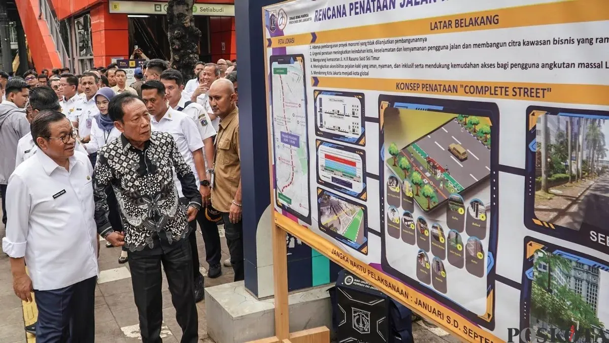 Gubernur Jakarta, Pramono Anung dan Sutiyoso meninjau pembongkaran tiang monorel di Jalan Rasuna Said, Setiabudi, Jakarta Selatan, Rabu, 14 Januari 2025 (Sumber: Poskota/Bilal Nugraha Ginanjar)