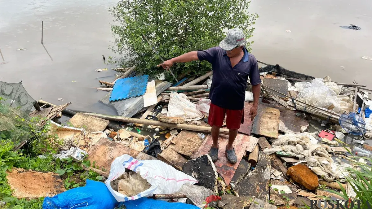 Menurutnya, sampah hanyut dari tempat bekas urukan. Namun, Sarpin tidak mengetahui pasti tujuan pengurukan lahan.