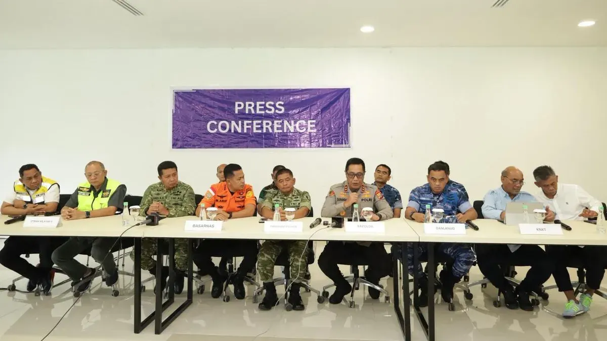 Konferensi pers tim gabungan  yang melakukan pencarian terhadap sebuah pesawat yang dilaporkan hilang kontak di wilayah Sulawesi Selatan. (Sumber: Dok. Tim SAR)