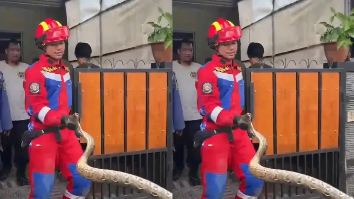 Sementara itu, dari rekaman video yang diterima Poskota, terlihat petugas Damkar sampai harus membobol tembok untuk mengeluarkan ular dari dalam pipa.