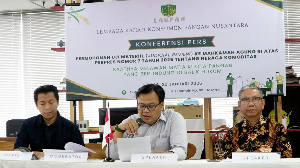 JAKARTA, POSKOTA.CO.ID - Lembaga Kajian Konsumen Pangan Nusantara (LAKPAN) mendaftarkan permohonan Uji Materiil (Judicial Review) ke Mahkamah Agung (MA) terhadap Perpres Nomor 7 Tahun 2025 tentang Neraca Komoditas pada Senin, 19 Januari 2026.