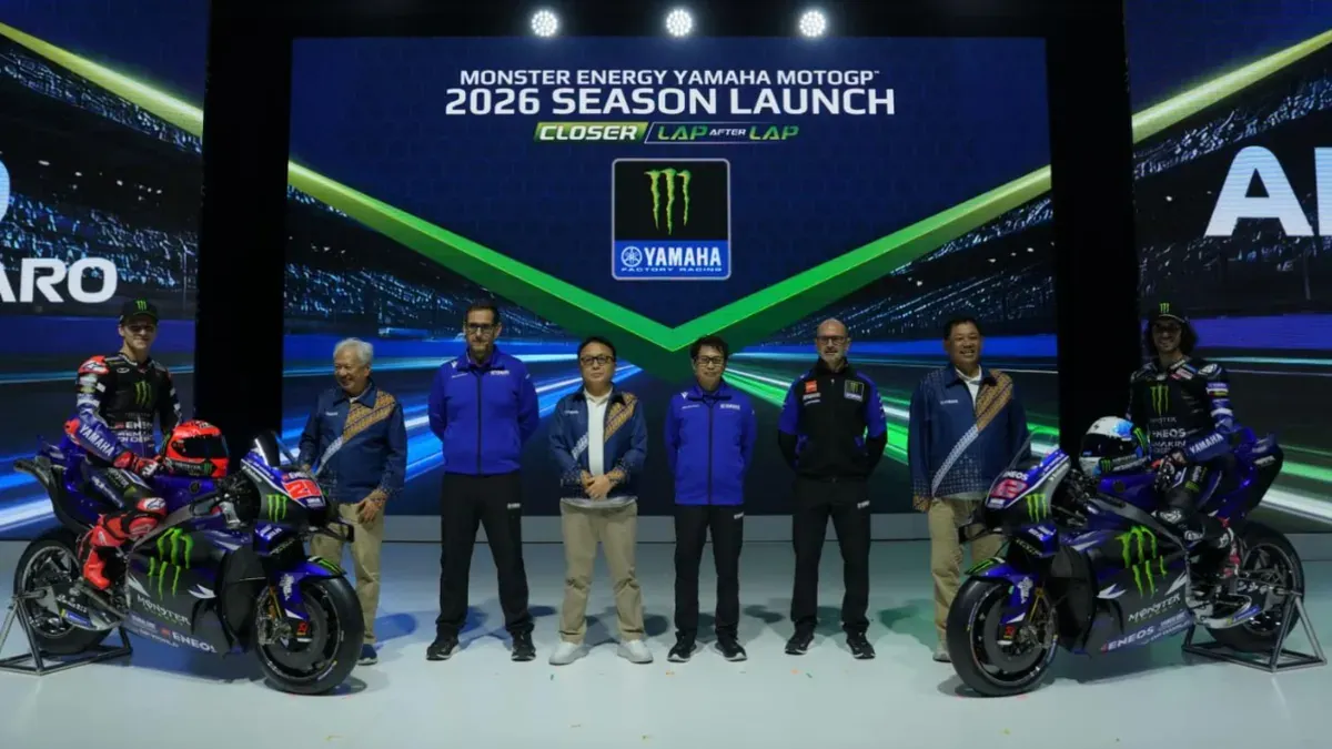 Momen ini dimanfaatkan Yamaha untuk memperkenalkan line up Monster Energy Yamaha MotoGP 2026 serta YZR-M1 generasi terbaru dengan mesin V4, sebuah langkah besar yang menjadi tonggak penting dalam sejarah pengembangan motor balap Yamaha di MotoGP.