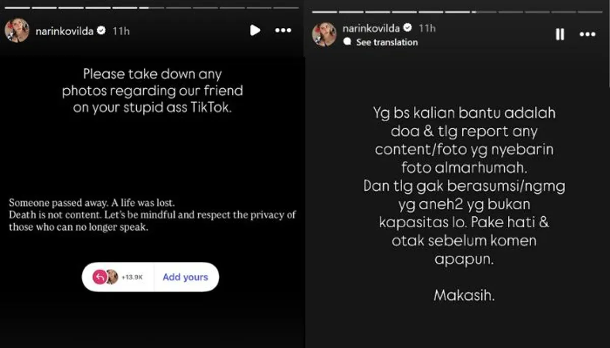 Banyak dari mereka membagikan template Instagram Story bertuliskan, “Someone passed away. A life was lost. Death is not content”, sebagai bentuk kampanye penghormatan terhadap privasi dan duka keluarga.